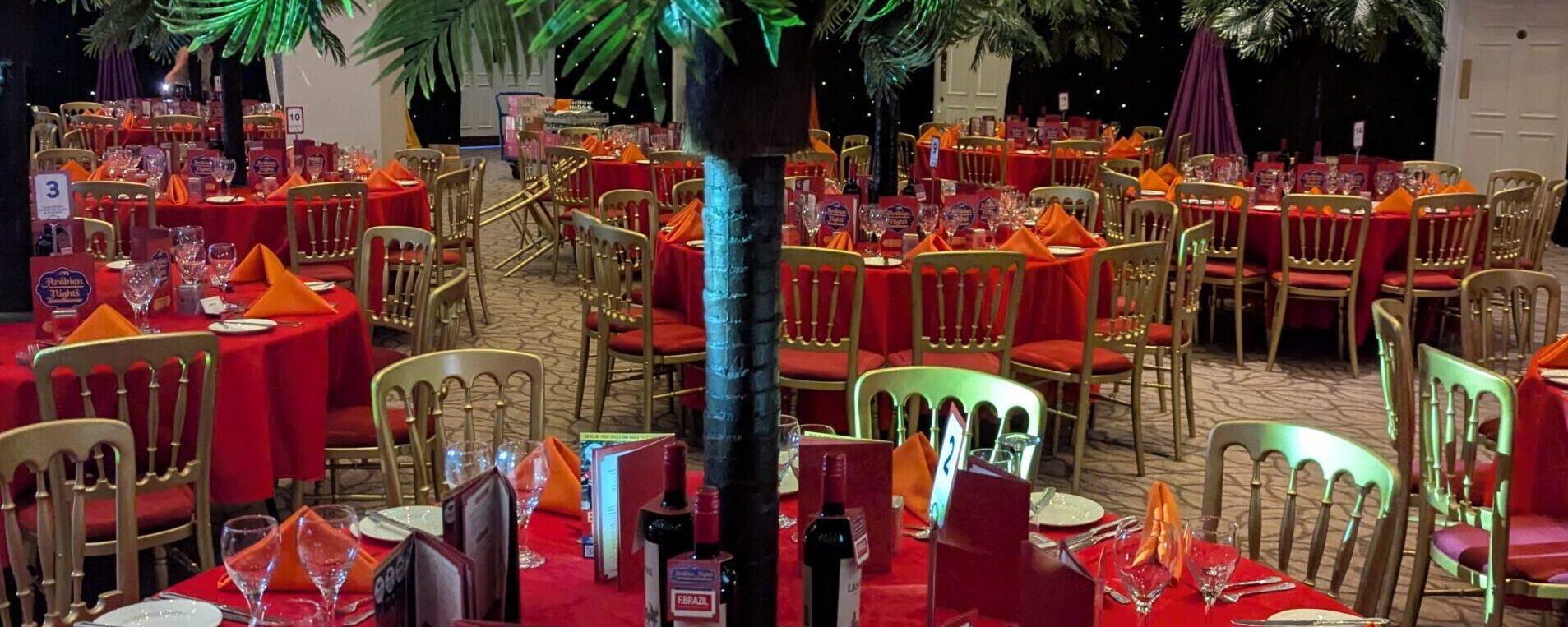- Theming & Styling: Life-size camels, palm trees, Aladdin lamps, draping, and coloured linen transformed the Brooklands Suite into a magical oasis.